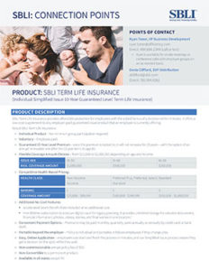 ¹Turn Up The Volume, 2016 LIMRA Report. ²As per the respondents to the surveys in the LIMRA 2018 Insurance Barometer Supplemental Data Report. ³The available coverage amount varies by the age of the insured. ⁴SBLI has partnered with LegacyShield© to provide these services at no cost. Additional LegacyShield products may also be available for purchase. Your relationship or agreements with LegacyShield are separate from your relationship or agreements with SBLI. The kits your clients may be receiving access to through LegacyShield are not intended to be legal, tax, or investment advice. You should consult your own legal, tax, or investment advisor regarding your personal situation. SBLI has a financial interest in LegacyShield.